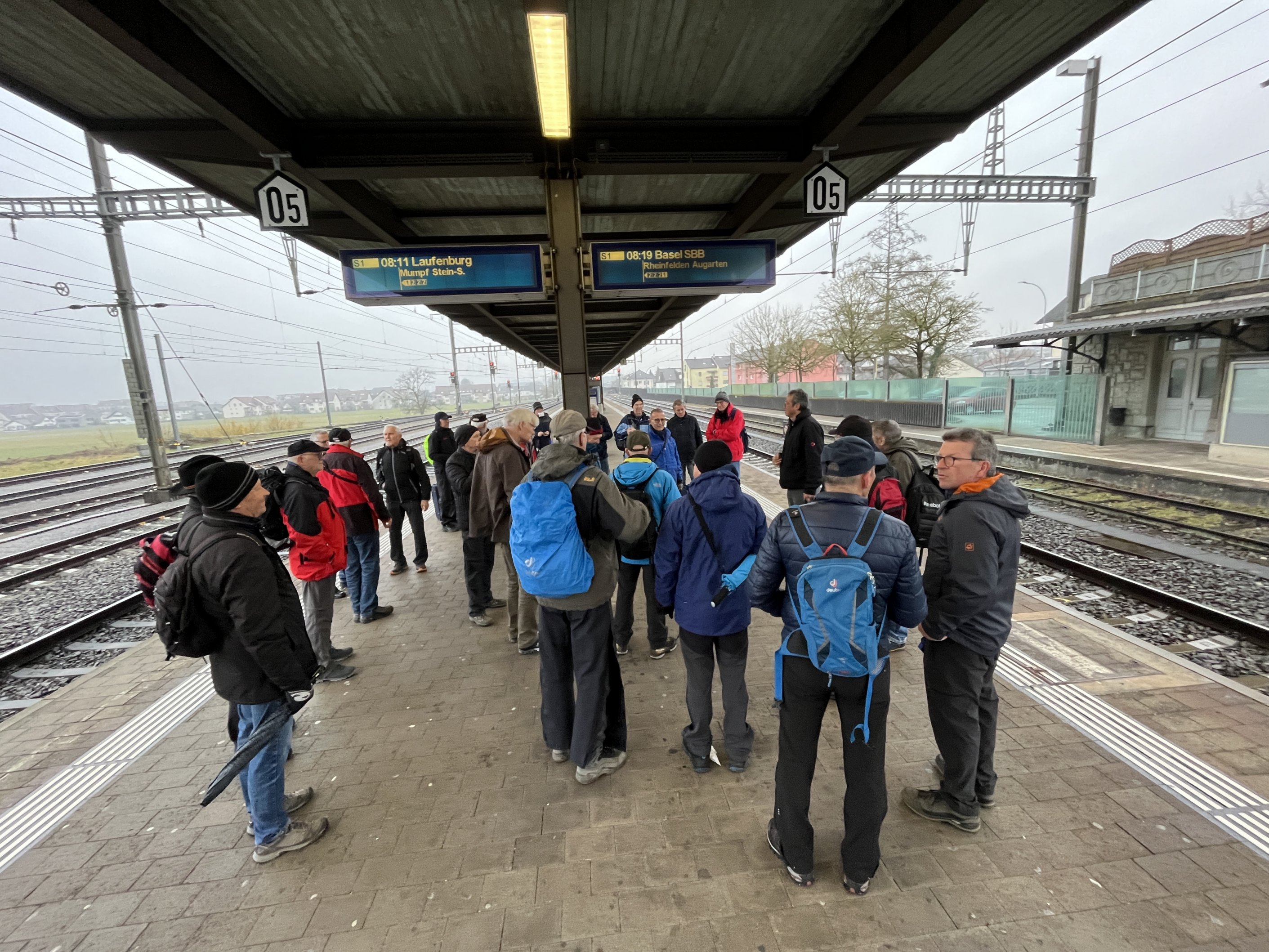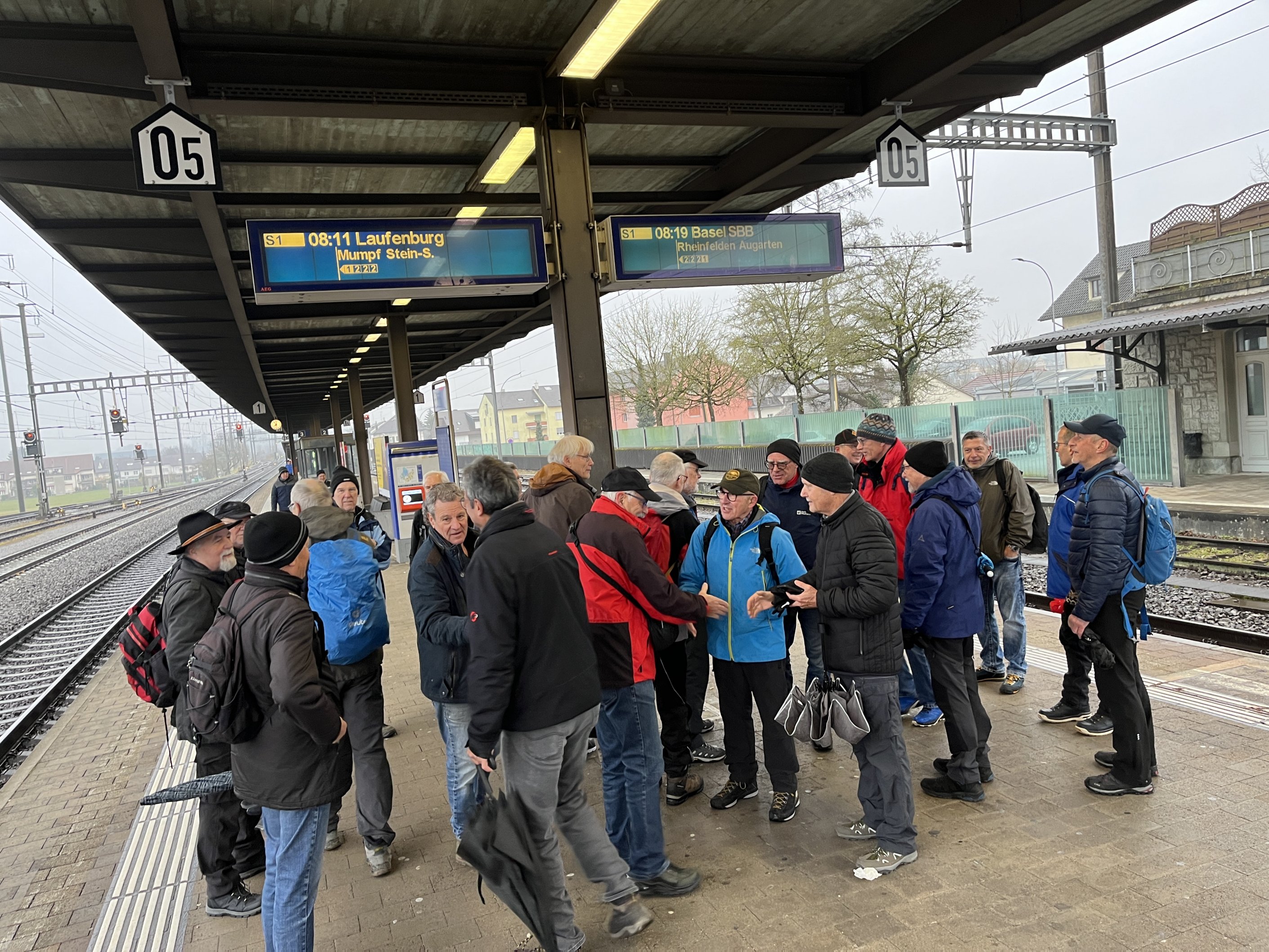 Pünktlich um 08:11 Uhr sind wir mit der S1 Richtung Stein-Säckingen gefahren. Von dort ging es über den schmalen Pfad entlang dem Rhein Richtung Mumpf und von dort weiter Richtung der Wallbacher Waldhütte.