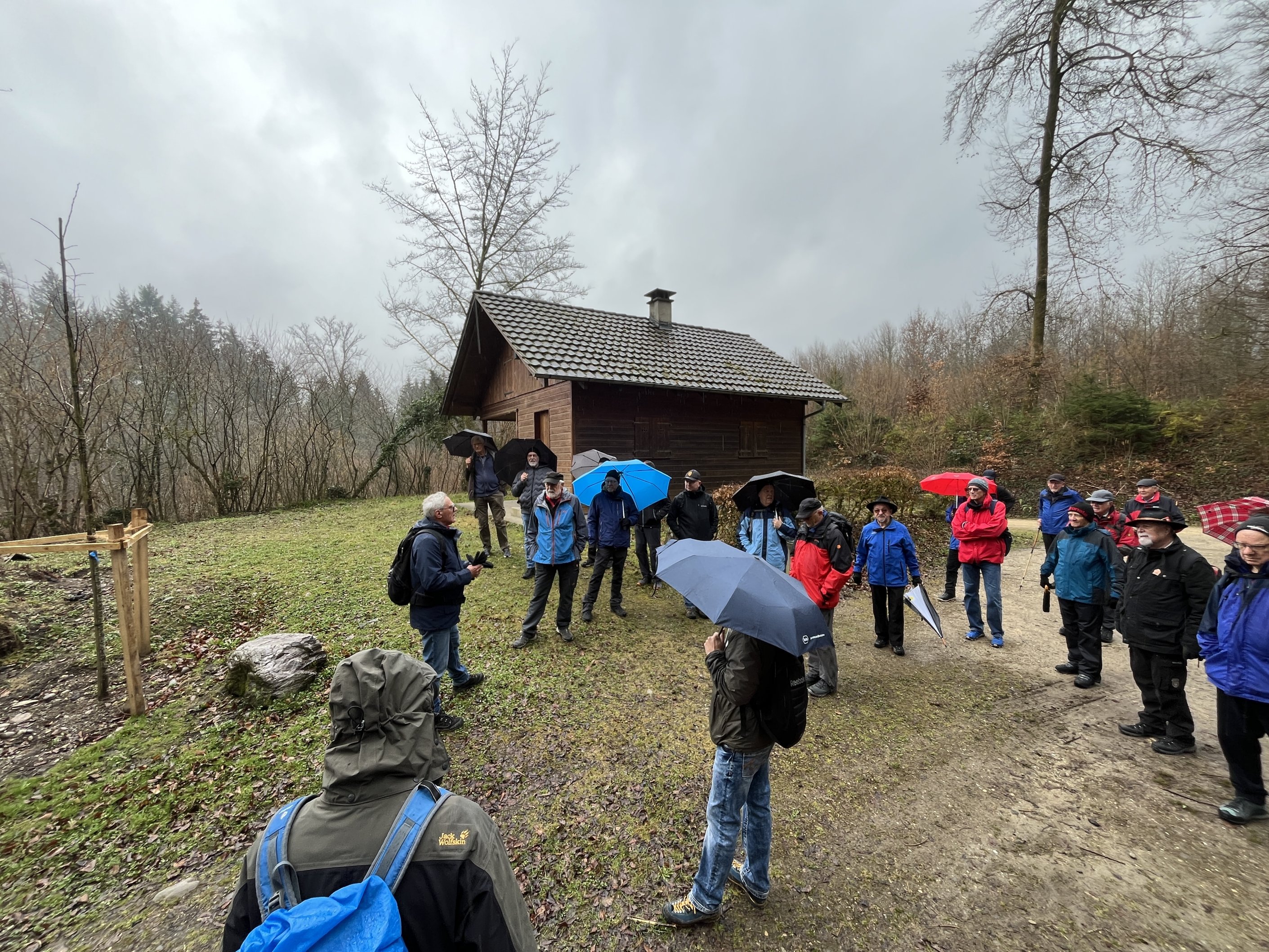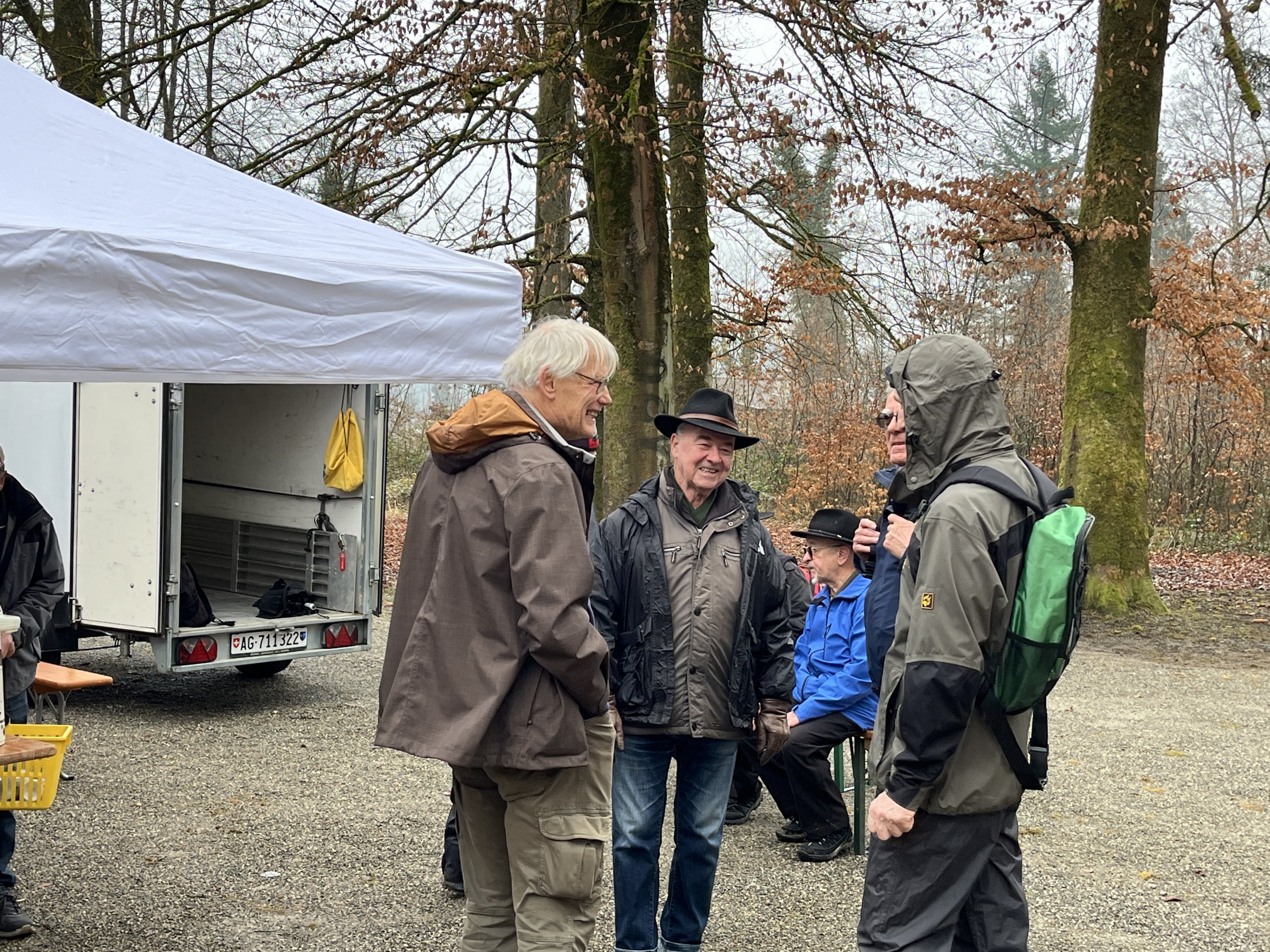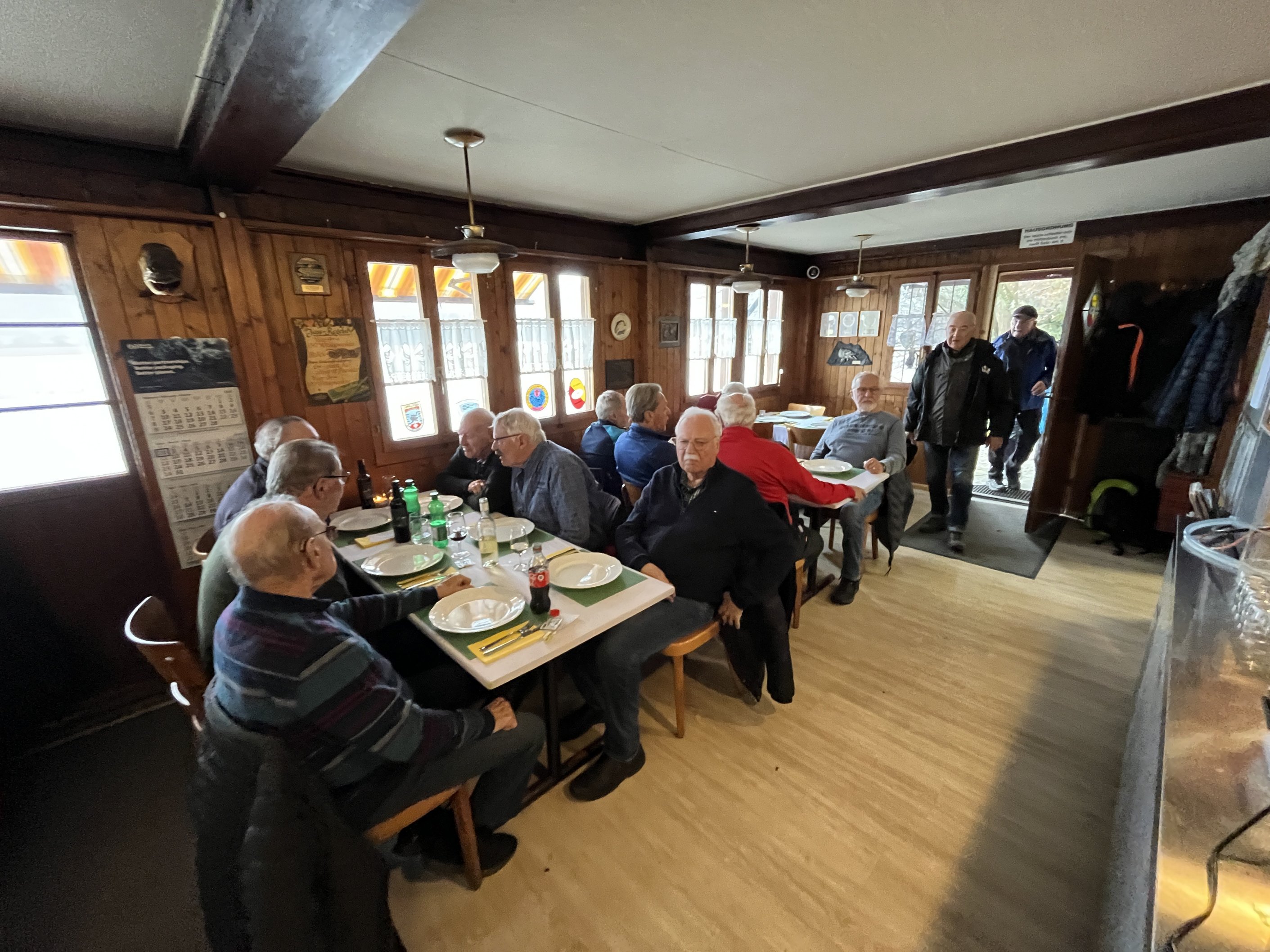 Aufgrund unserer ausgezeichneten Kondition, hierbei ein Dank an unsere Vorturner, sind wir etwas verfrüht dort eingetroffen. Empfangen von Waltis Helfermannschaft und dem Duft von warmen, selbst gemachtem Speckzopf, Kaffee und frischen Äpfeln haben sich weitere 14 Kollegen hinzugesellt.