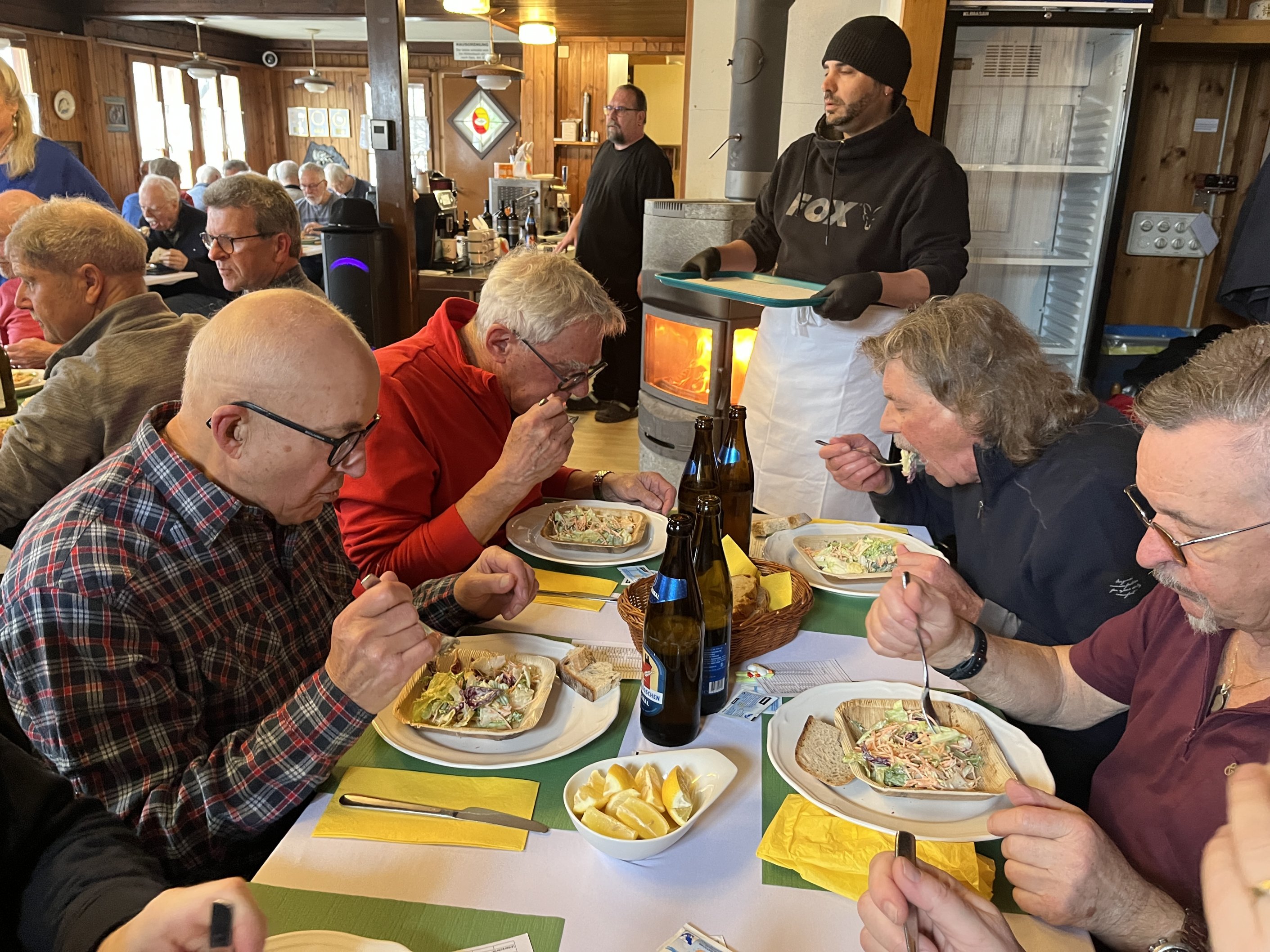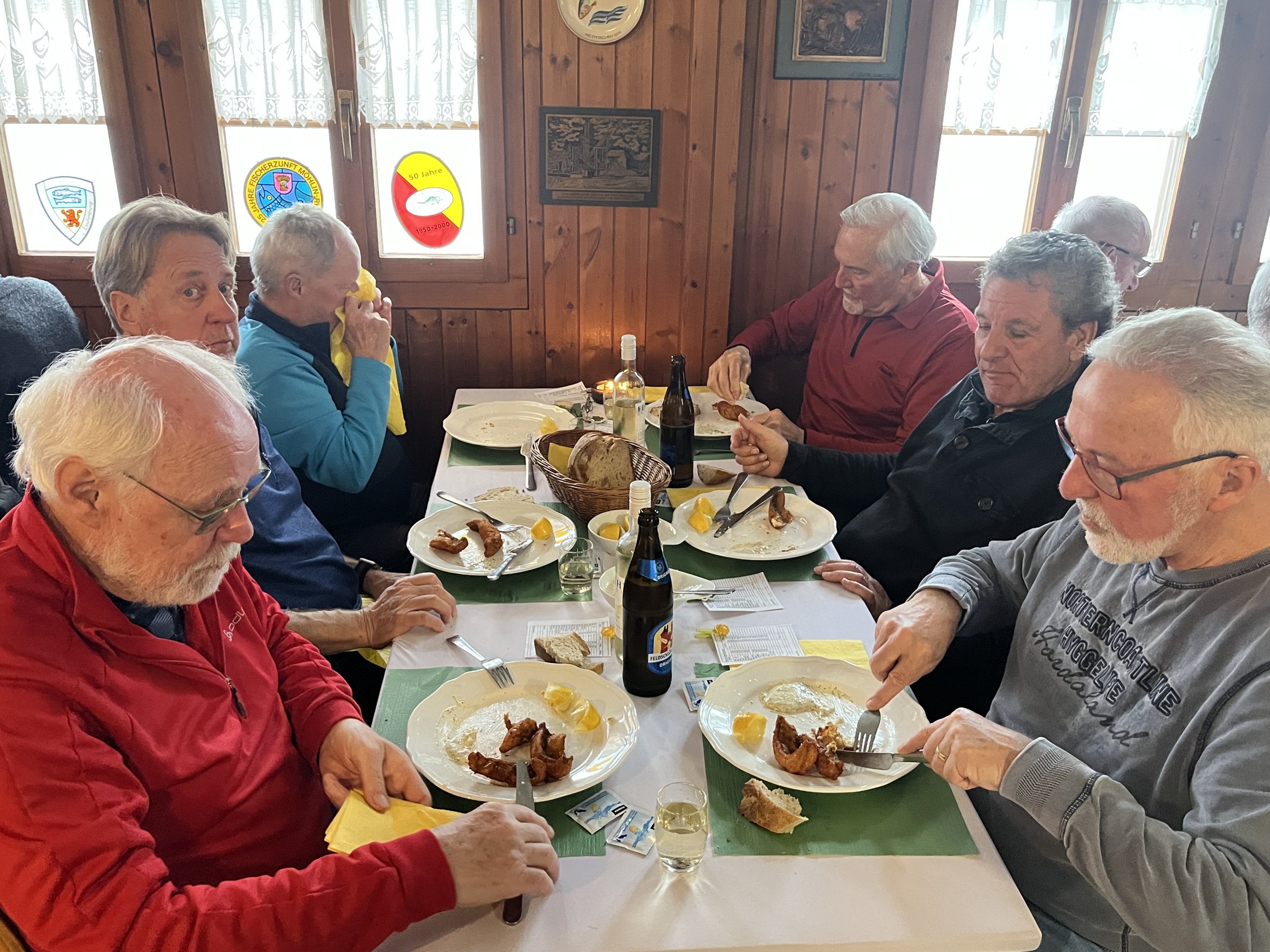 Anschliessend war unsere letzte Etappe im Fokus und diese hatte das Ziel, uns vom Team der Fischerzunft Möhlin-Rhyburg, welche 1950 gegründet wurde, mit einem kleinen Salat, frittiertem Felchenfilet, Tartarsauce und Zitronenschnitz à discrétion verwöhnen zu lassen.