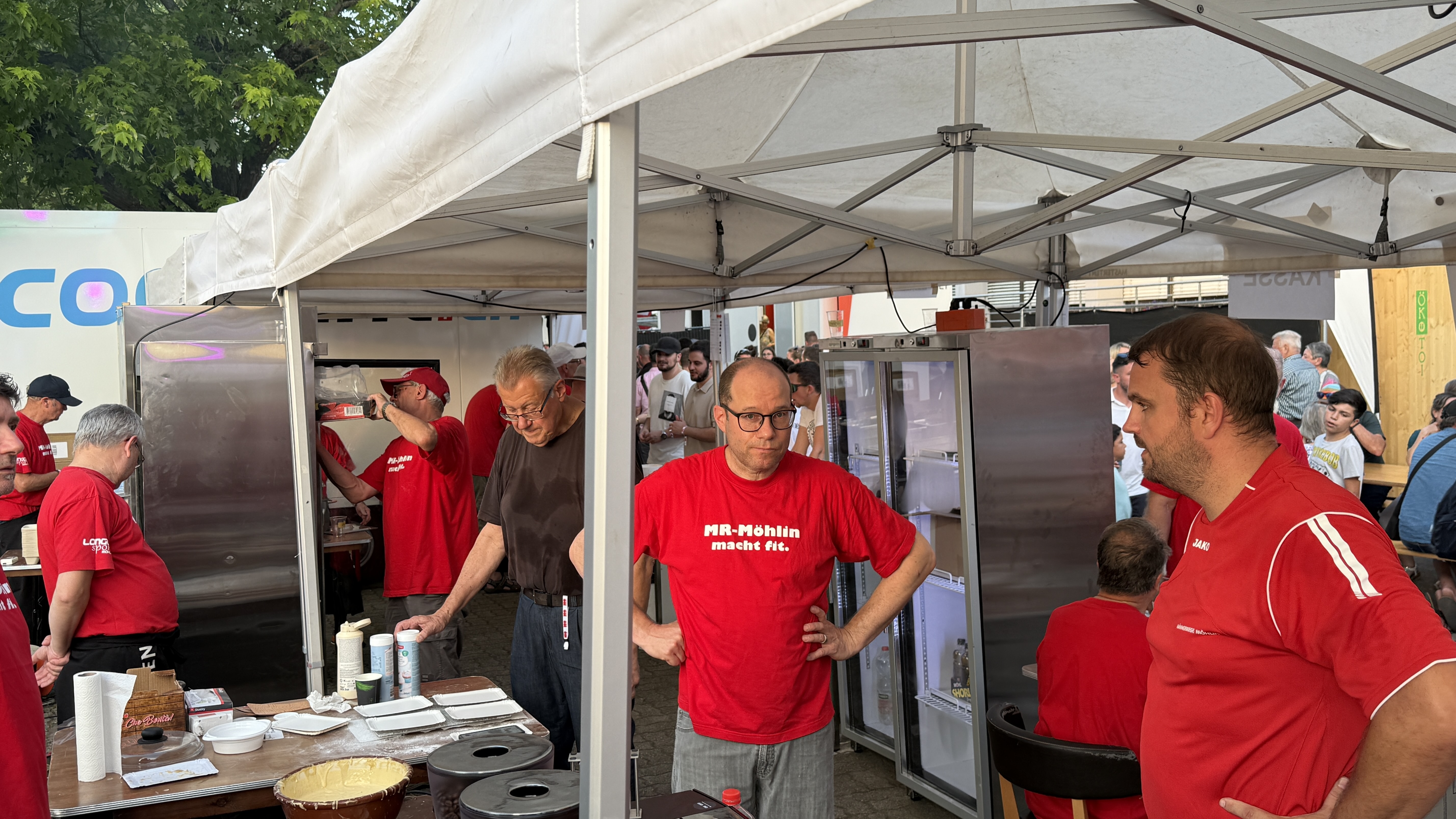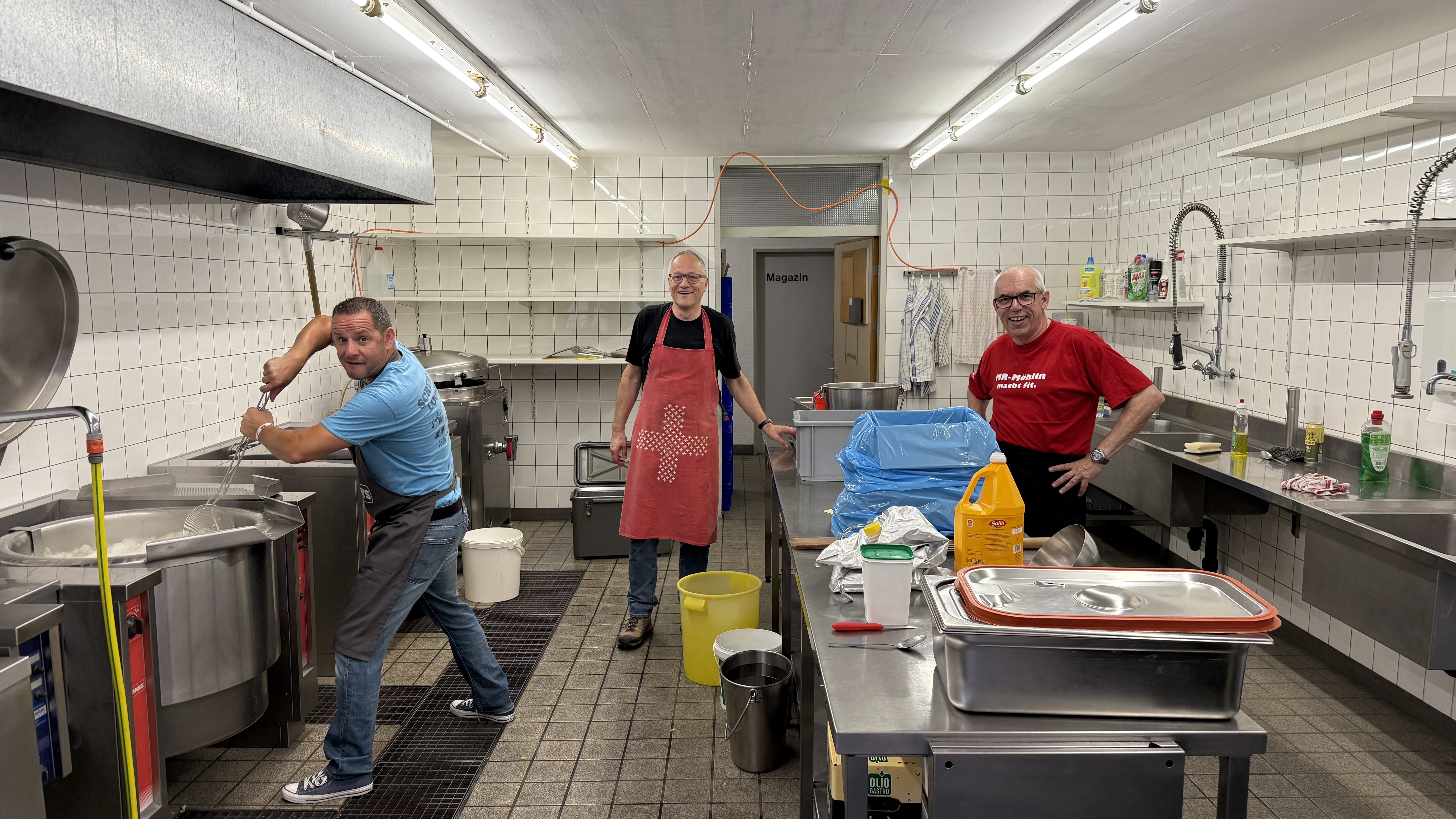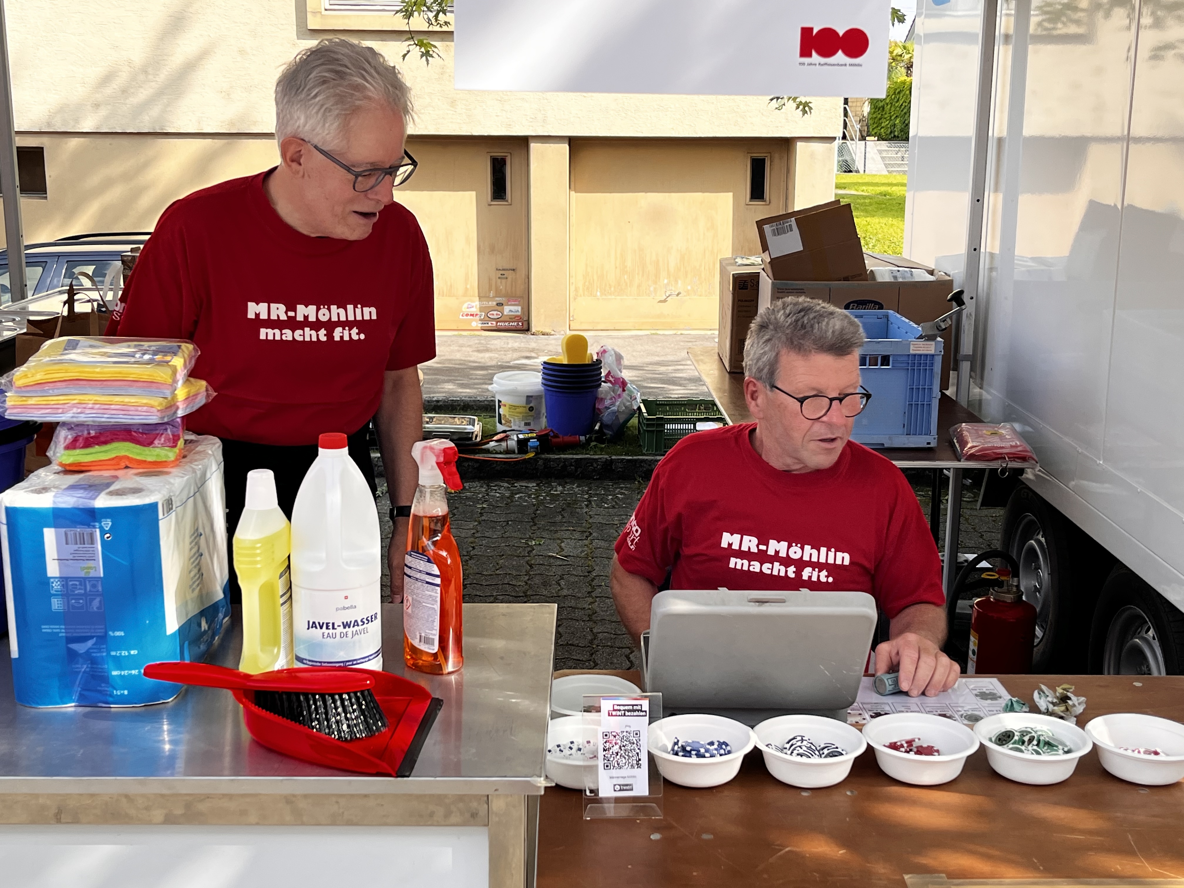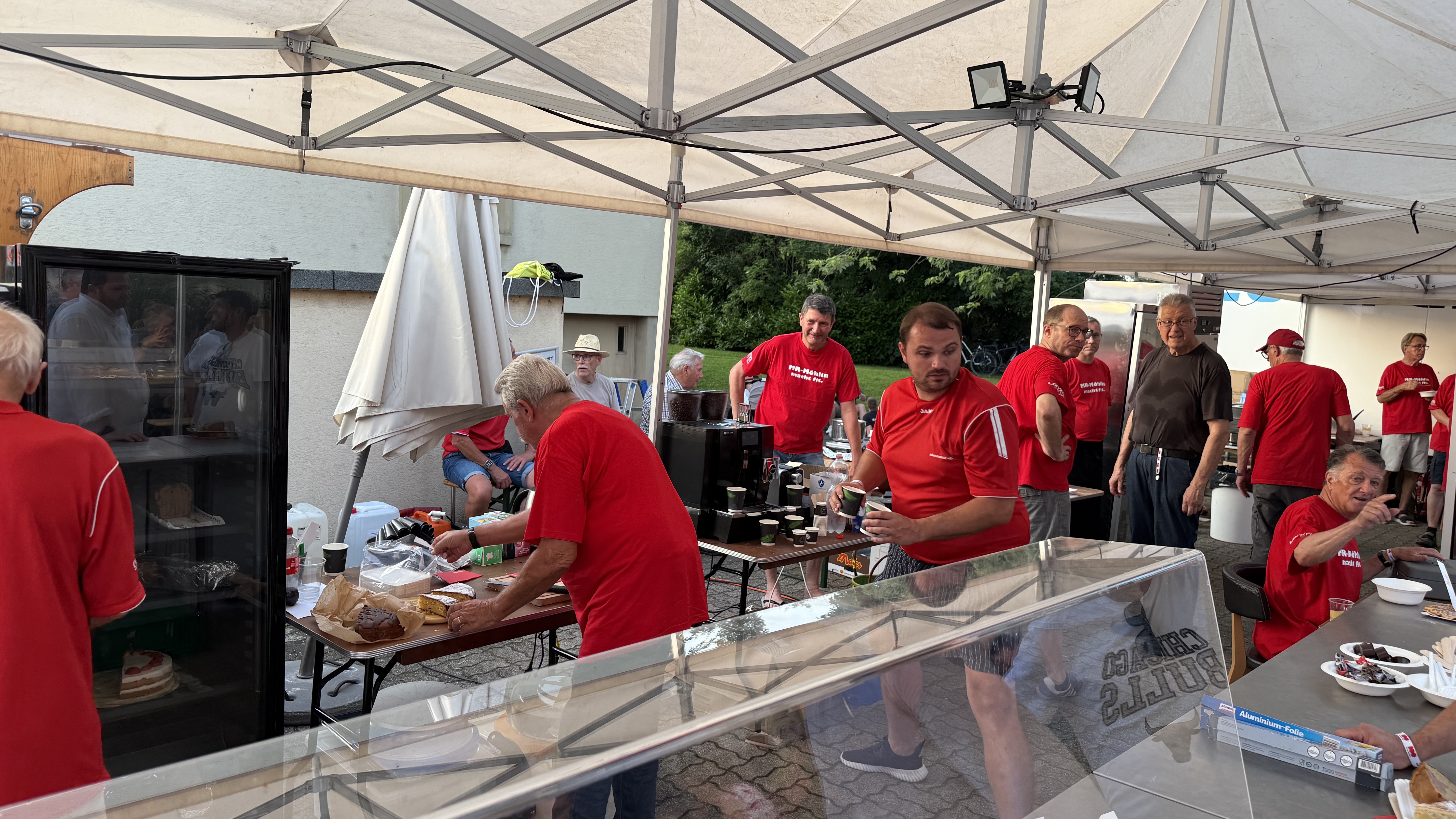 Die Männerriege hat zum 100 Jahr-Jubiläum der Raiffi Möhlin mit einem Verpflegungsstand die Gäste der Raiffeisenbank verköstigt. Hörnli mit G'Hacktem, Schweins- und Pouletwürste, warme Waffeln und ein Kuchenbuffet standen zur Auswahl. Es benötigte den Einsatz aller Männerriegler, um diesen Anlass zu stemmen. Wir durften einen heissen Sommertag geniessen, die Stimmung bei den Besuchern war durchwegs positiv, Küche und Infrastruktur funktionierten reibungslos. Und so konnte ein rundum gelungener Anlass gefeiert werden, der unserer Vereinskasse einen schönen Zustupf bescheren wird.