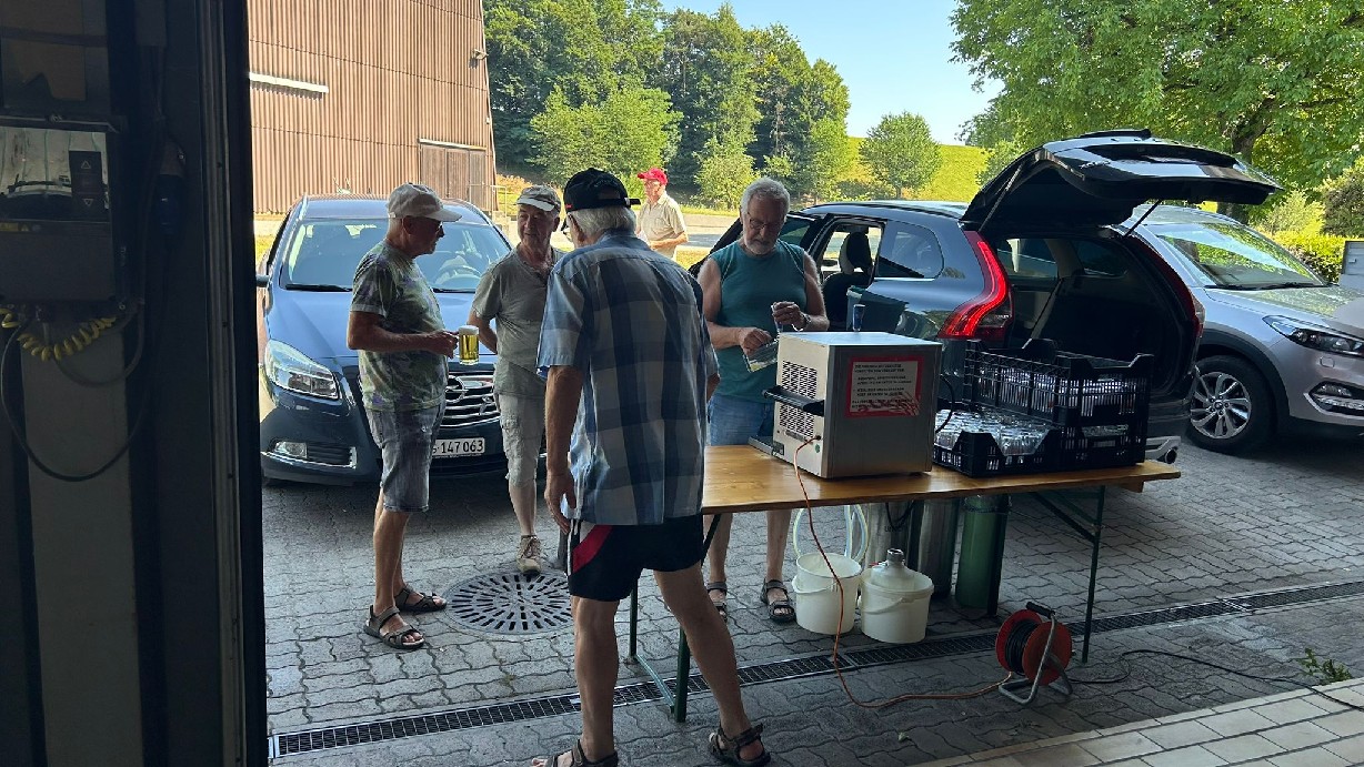 Einmal mehr gilt es Dario Briano sehr herzlich zu danken, der seine Werkstatt wie seit Jahren zur Verfügung stellt. Und dann geht der Dank natürlich an alle diejenigen, die sich mit einem Obolus an den Kosten beteiligten. Danke auch an meine Mithelfer dieses Hocks.