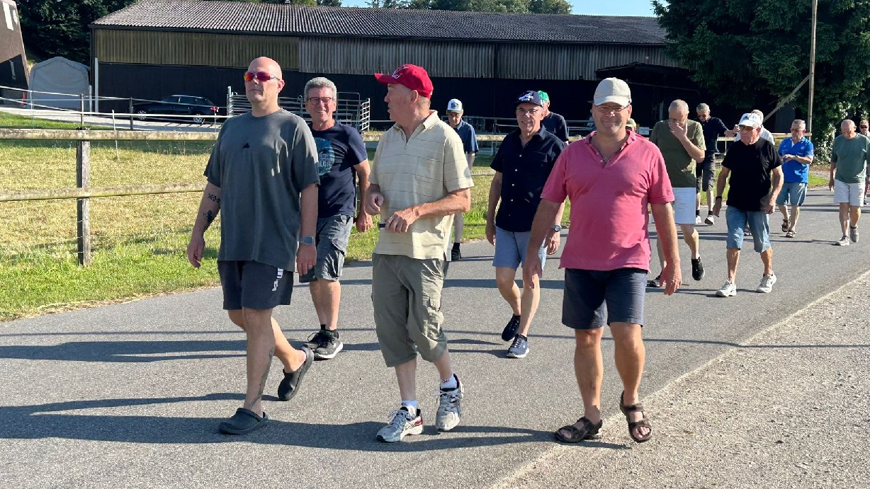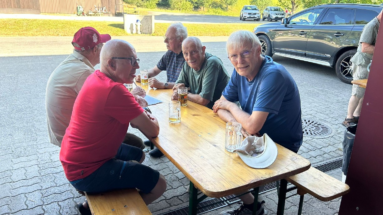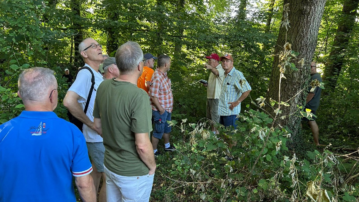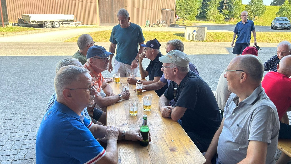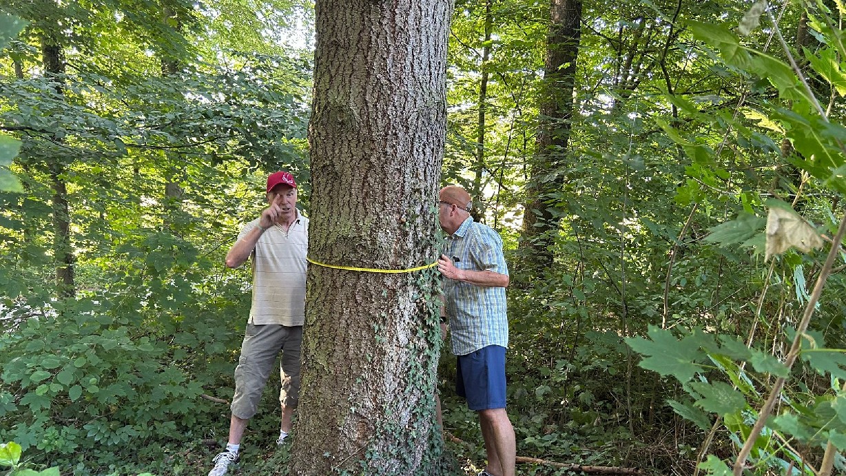 Nach dem letztjährigen starken Aufmarsch unserer Mitglieder sind wir auf einem durchschnittlichen Stand von 57 Teilnehmer verblieben. Sicher hat auch die Terminkollision mit einer Faustballrunde zu diesem Rückgang geführt. Relativ viele Männerriegler wollten sich dann über den Zustand unserer Douglasie ein Bild machen. War doch ca. 10 Tage vorher das benachbarte Bienenhaus in Brand geraten (worden?). Es ist ein trauriger Anblick: Auf der Südseite sind doch einige Äste angebrannt. Wie stark der Baum geschädigt ist, kann noch nicht gesagt werden. Unser Förster ist informiert und wird uns über das weitere Vorgehen beraten. Gemessen wurde dann auch noch: Der Zuwachs beträgt weitere 2 cm, nun zu einem Umfang von 202 cm.