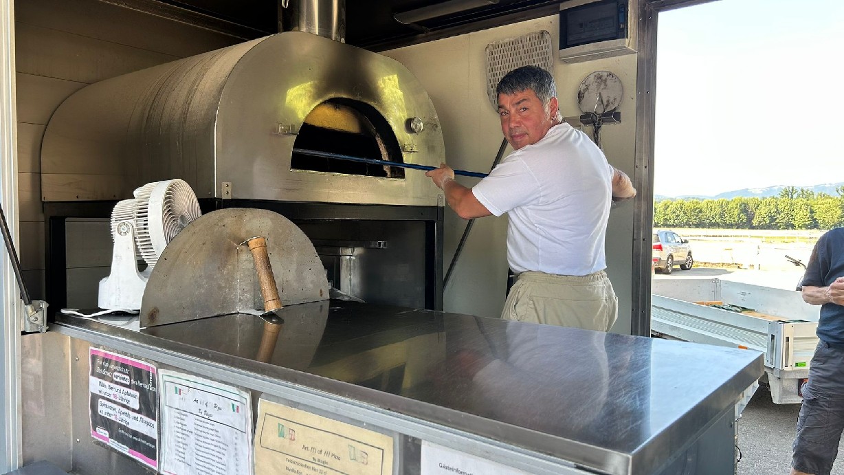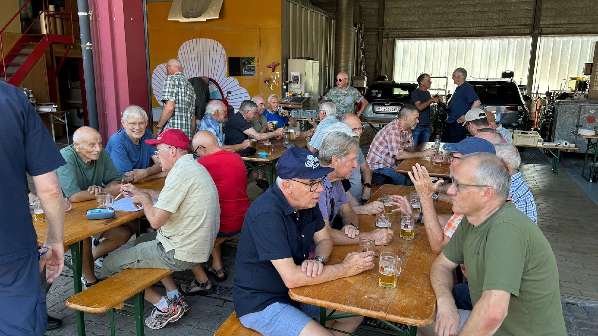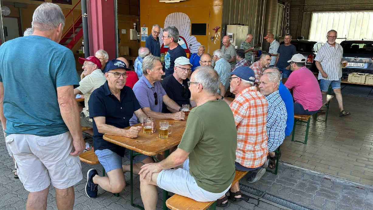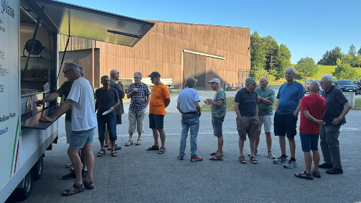 Zur eigentlichen Feier/Hock: Das heisse Wetter löste natürlich grossen Durst aus, der durch unseren Beizenchef (Danke Chrigel) mit genügend Getränken gelöscht werden konnte. Zu essen gab es erstmals Pizzas (sehr gut) aus dem Holzofen von Biagio Cannella. Die Wartezeiten bei der Essensausgabe hingegen waren nicht ganz befriedigend. Aber zuletzt konnte doch jeder seinen Bauch genügend füllen.
